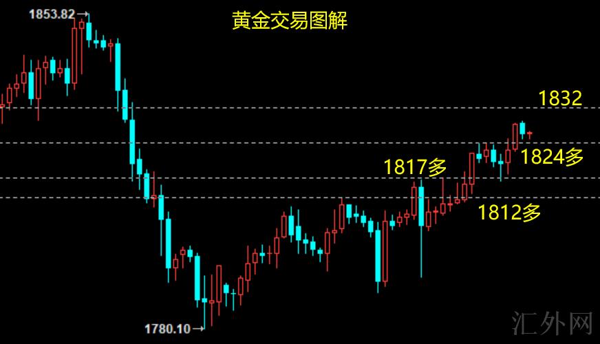 星期二价格回踩1815顺遂上升,美盘拉高到1828,日线图报得大阳,K线组合买方结构不错,日间仍可看多;白盘短线支撑1824-1822,强支撑12H-MA5-1820;短线压力1828-1830,强阻1832,突破打开上方空间;