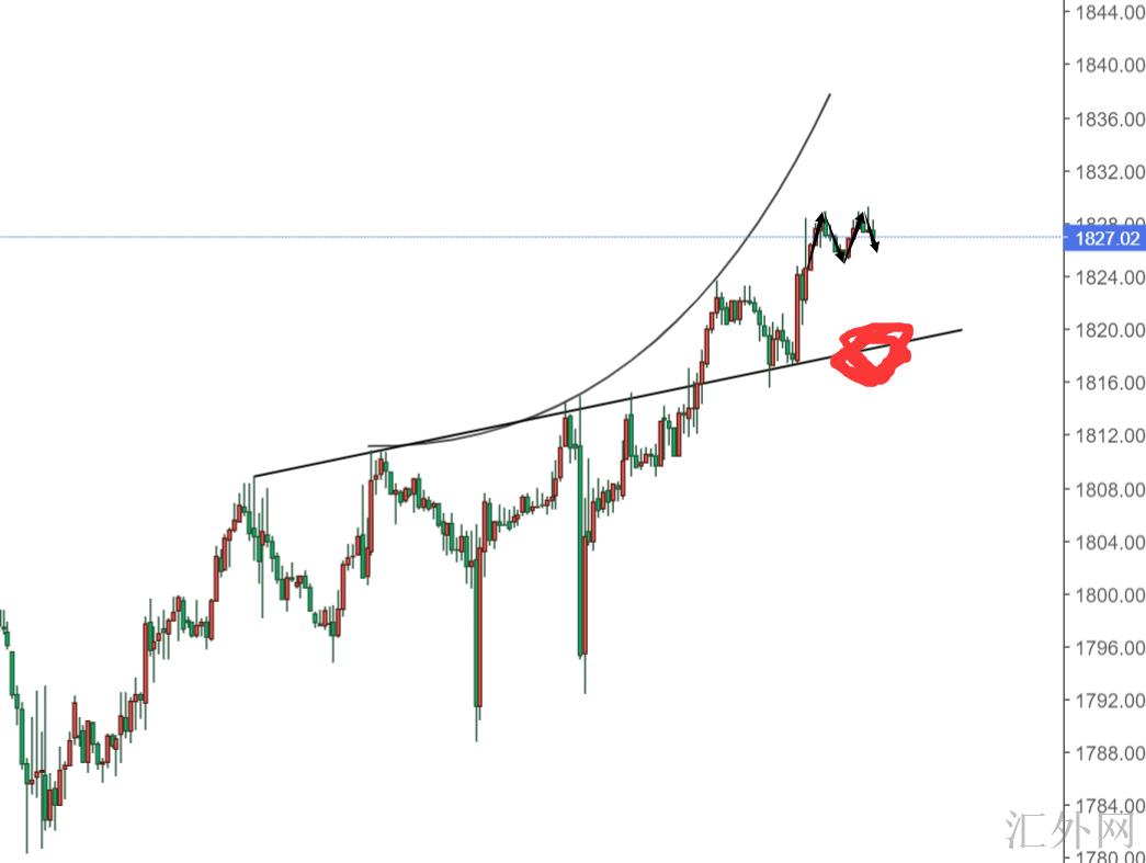 想要证实上升,那就得目睹美元先完成第一阶段的上涨突破,比如95.8,这里是最近盘整交叉震荡的最高位,到时候你就放心吧,黄金肯定要跟着下去,由于昨天我技术图中就说过,头肩顶的最好B肩位置就是在1828,我不需求自己有多准,反正这里就是看反跌的最好时刻。