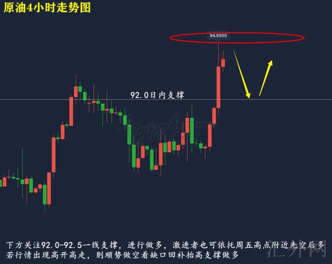 WTI原油星期五(2月11号)早盘开盘之出开盘适当下探,刷新日间低点89.15美元每桶后展开上涨,呈迟缓上升;直至美盘,因市场开始消化因能源需求急剧上涨,而致使美联储执行更为激进的,且更难预测的加息的机会性,原油扩暴升幅,刺破94.0关键点位位置,创下日间高点94.63美元每桶,截至收盘,原油自日间高点适当回调,收盘在93.878美元每桶。