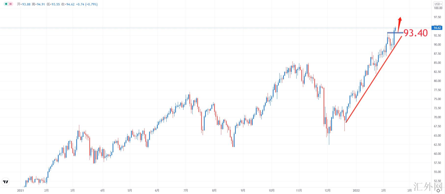 【策略逻辑】:当前市场买方流向,推荐投资人可斟酌注意93.40左右买涨,止损92.30附近,止盈95.00附近。