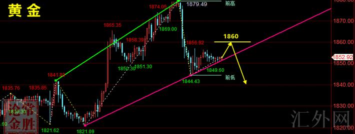 黄金夜里策略:回弹1860左右空,止损1865,计划看1845