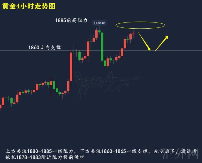 回弹1880-1885左右买跌,止损5美金,计划看1865-1870左右;