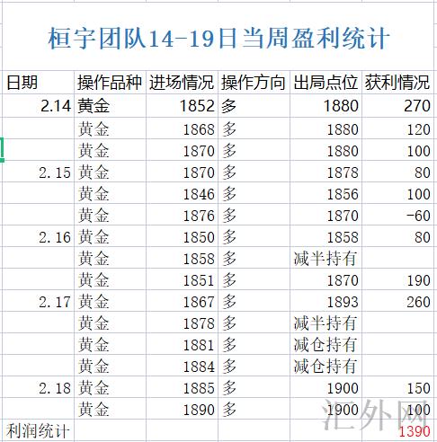 2.19黄金一周内接连低多创15单14胜好成绩,下周行情及操作前景