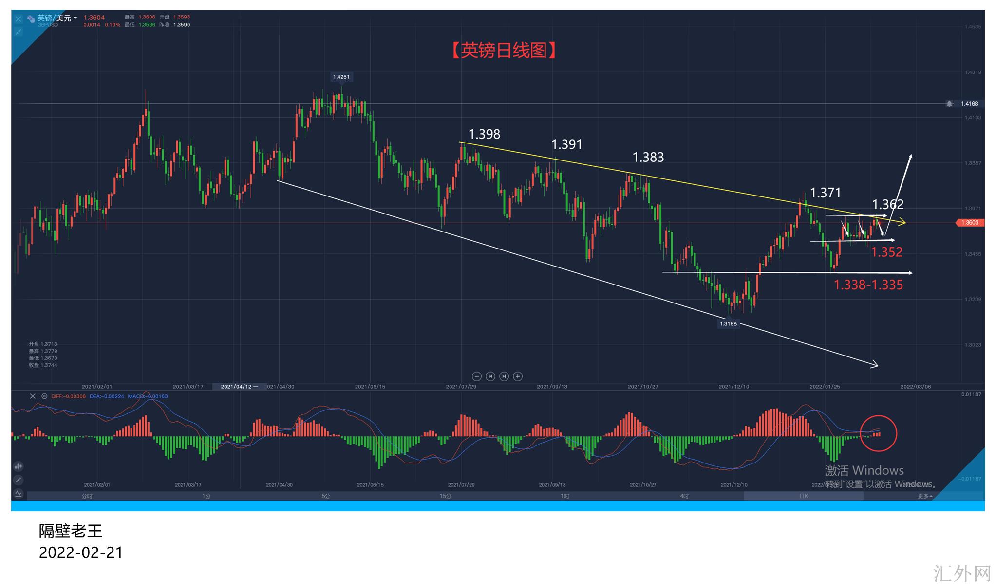 至于俄乌之间的冲突,对于英镑的影响并没有是特别大,核心依旧看美元如何表现,假使美元在这段阶段,展现出强劲的一面,也只只会给英镑导致小小的阻力,并没有会导致什么特别大的有好处空头。但前提,英镑务必击穿来从1.398下探趋势抑制点1.362。