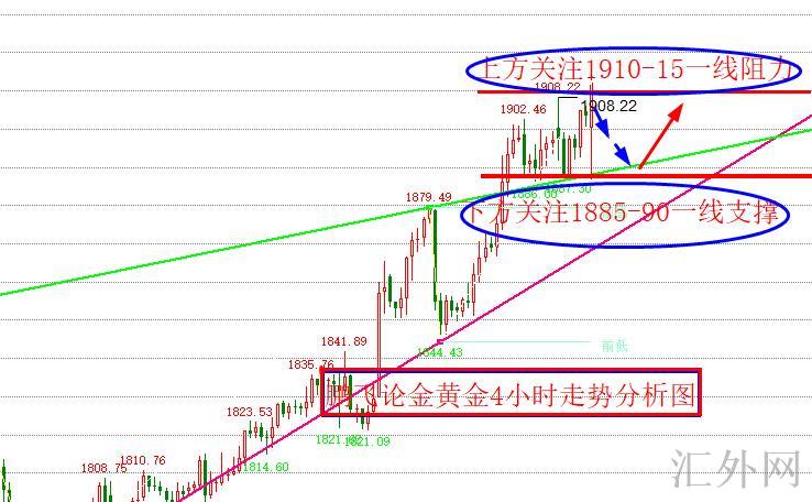 黄金回撤1885-1882左右买涨,损1876,计划看1906-1908一线;