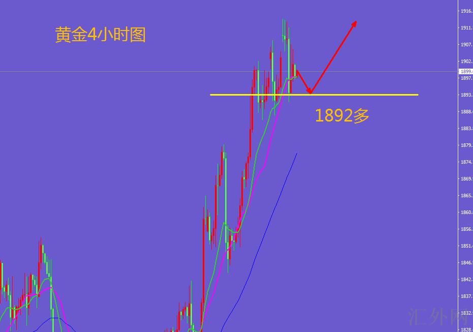 黄金1892多,止损1884,止盈1920