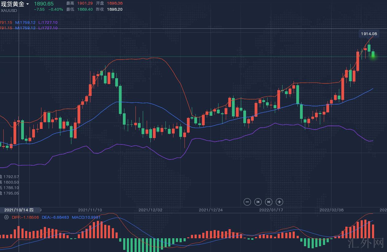 ①、黄金层面笔者只想说趁热打铁,市场已经对俄乌矛盾失去了信心,暂时的情绪推涨已经完结,剩下的就是顶背离的下挫模式,即使当前西方各国放话对俄实行制裁,但是笔者觉得就是嘴炮而已经济制裁每日都在上演,导致危机公关罢了,而盘面中很显著的昨日买方终结在年线抑制1916起跌点,这就是新趋势的起点,下一步将去试探1850支撑点。