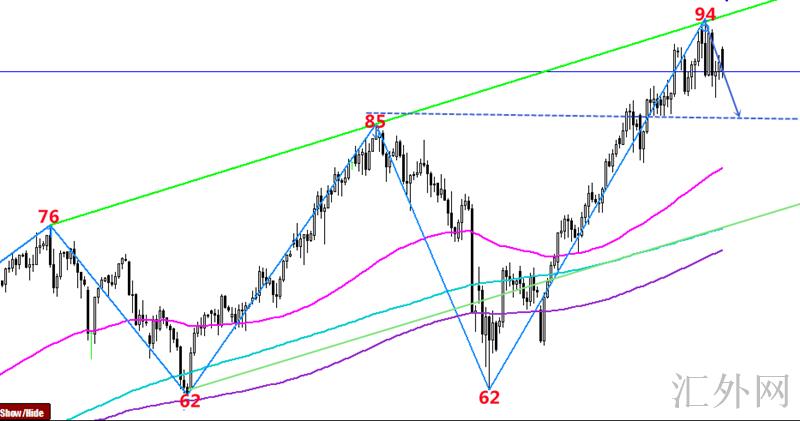 因地缘局势紧俏,原油一路奔腾到95高点,上涨趋势尤为惊人!而美国更深一步就俄罗斯或许进攻乌克兰发出警示,地缘政治局势紧俏;此外也评估伊油投向市场的机会性,称伊油最近不太应该进入市场。阿拉伯产油国的部长们星期日在沙特阿拉伯开会时表明,欧佩克+应当坚持当前的协议,每月增产40万桶每日,他们婉拒了增长产能以减轻价格阻力的号召。原油最近遇阻95关口,徘徊在90左右执行高点震荡。隔日显现了跳空高开局势,又一次打击94高点。而94关键点位正好是76—85水平线抑制点,加上技术分析的严重超买早就已经有回踩修复的欲望,故此隔日布局的94空成功狙击日间高点回调,而且完美抵达计划91名置,日间冲顶回调收阴。今日上方93左右可空持续看90是否跌穿。
