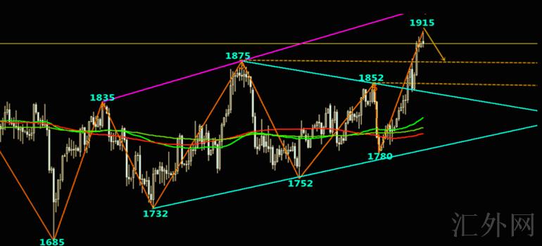 操作上:目前不好下手,留心1898-1900压力得失情形来布局,参考黄金小时线级别来操作;