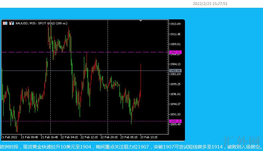 隔夜市场避险情绪高涨,黄金现货从隔夜低位1890上升胜过20美元。在昨天的分析中,我们已经给出了很清晰的操作界限:击穿1907入场买涨。左侧交易在1892入场买涨,抓住任何一个日间机会,都可以得到不错的收益。