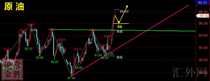 黄金层面,今日黄金当前临时保持在1940美元每盎司左右,短线黄金大阳线行情,日间黄金单边上升趋势。由于美国总统拜登扩大对俄罗斯的制裁举措,乌克兰紧俏局势加重,持续提升了对黄金的避险需求。今日黄金当前临时保持在1940美元每盎司左右,一举击穿了1916这个8个月的日K线高位阻力!黄金大阳线行情,日间黄金冲顶趋势。