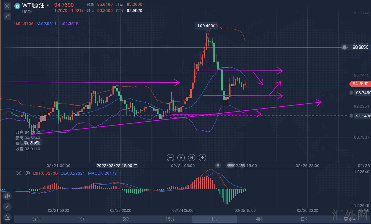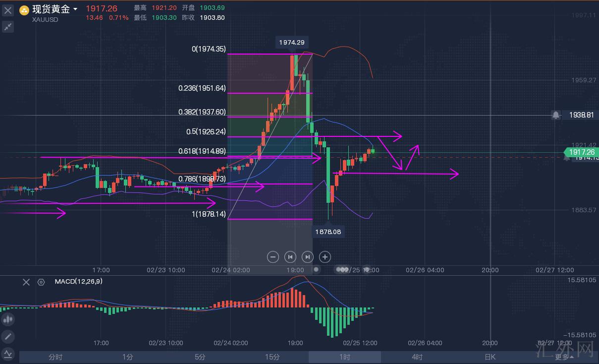黄金层面、昨日俄乌矛盾升级,只半日时间,乌克兰全面瘫痪,欧元兑美元国家雷声大雨点小,拜登表明任何情形下都不会派军队支援,北约东扩,俄罗斯强悍回击,最终依旧乌克兰扛下了所有。昨日黄金伴随俄乌局势升级,避险情绪攀升助推黄金上升到1974左右,但伴随俄乌局势已定,欧元兑美元国家仍未支援,市场恐惧情绪下滑,黄金高点迅速回调,凌晨最低下挫到1878左右,日间上演极限过山车行情。