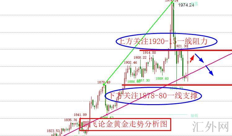黄金日K线级别的MACD快慢线任然是维持往上发散的状态,黄金的上涨趋势也会保持,而当前4小时级别的一次顶背离已经成立了,但是日K线的上涨趋势仍在,这表明黄金4小时后市极大或许走二次甚至多次顶背离才可面临日K线的回踩。当前4小时来说,卖方放量已经执行一波时间了,在死叉后面卖方放量往往会降低,所以鹏飞论金觉得黄金的回调不会太大了,预期日间会在低点执行一波时间的盘整震荡运行,等候4小时快慢线死叉后面更深一步的朝下发散,只要快慢线在0轴上方有又一次萎缩黏合,就可以去看黄金再走一个高位。也就是说黄金震荡上涨的首要趋势临时不会更改。综上所述,黄金日间交易参考上鹏飞论金推荐上方着重注意1920-1915一线压力,以下着重注意1878-1880一线支撑。