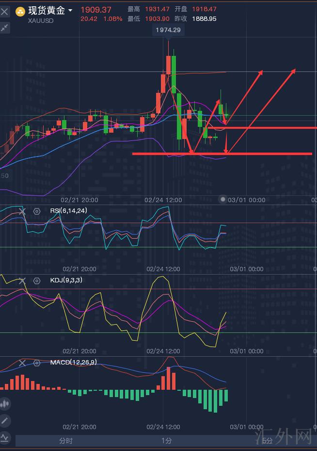 黄金策略:激进派1900-1902左右买涨,稳健者1880-1885买涨,止损4个点,计划看1910-1950!