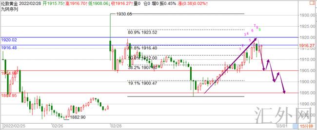 当前黄金最重要的抑制点在1916-20这里,黄金今日到1930跌向1895左右,立即又是大幅回弹到1916-20区间,我们就安静等待此区间的抑制力。