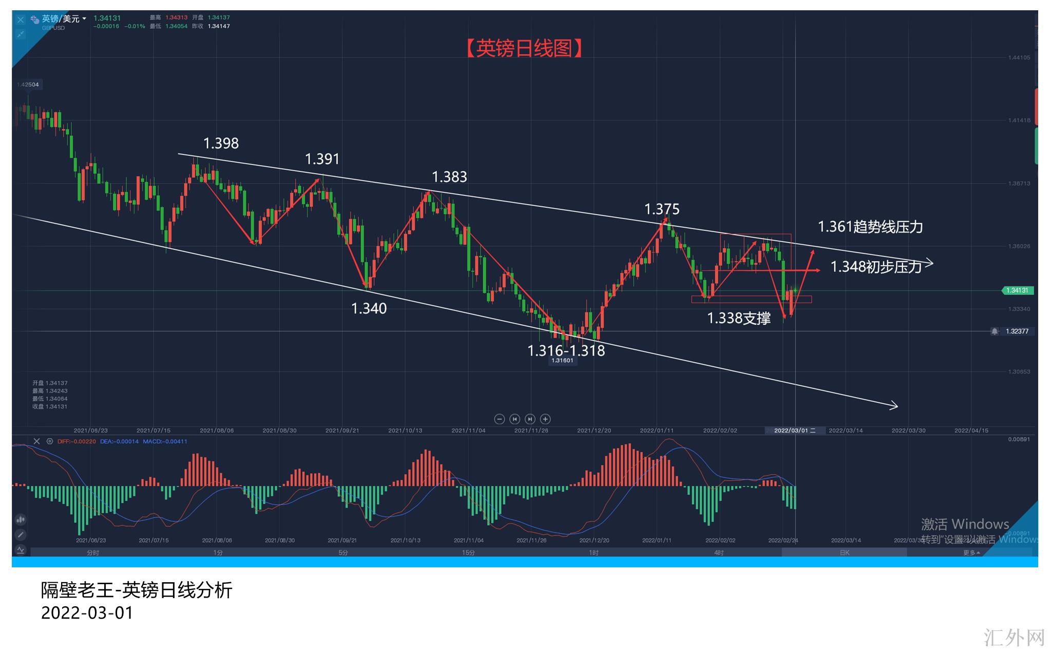 日间短线来讲,持续等回撤1.330买涨,做这段回弹,防守1.326,计划1.338;第二策略,回弹1.348买跌,计划1.340,防守1.352。