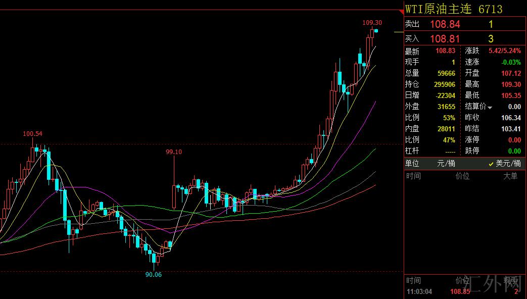 因西方对俄制裁连续加仓,并阻止俄罗斯一部分银行进入世界支付体系,美英欧制裁俄总统普京本人,普京下令战略核力量进入高度战备,地缘局势紧俏更深一步升级。星期二原油价格最多攀升,截至发稿WIT原油逼差不多110关键点位,俄乌将执行又一次协商,事态进度存在高度未知性,原油价格买方风格不变,适合注意的是油价偏高小心反转。