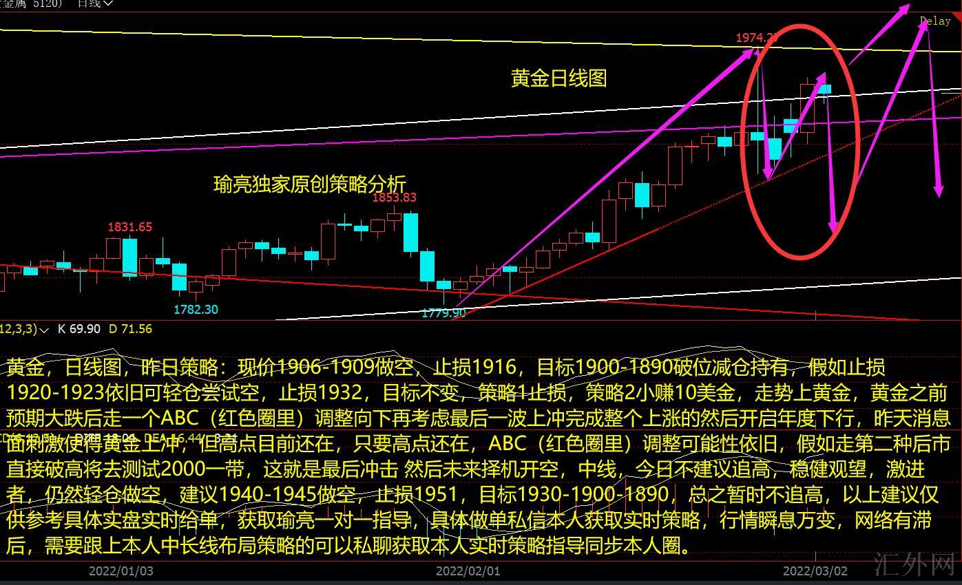 黄金,日K图,昨日策略:现价1906-1909买跌,止损1916,计划1900-1890突破减仓持有,假如止损1920-1923依旧可轻仓试图空,止损1932,计划不变,策略1止损,策略2小赚10美金,行情上黄金,黄金以前预计暴跌后走一个ABC(红色圈里)调动朝下再斟酌最后一次上冲完成整个上升的随后开放年度下探,昨天消息面刺激致使黄金上冲,但高位当前仍在,只要高位仍在,ABC(红色圈里)调动机会依旧,假如走第二种后市直接破高将去试探2000一带,这就是最后打击 随后将来择机开空,中线,今日不提倡追涨,稳健观望,激进派,依然轻仓买跌,推荐1940-1945买跌,止损1951,计划1930-1900-1890,总之临时不追涨,以上推荐仅供参考具体实盘实时给单,获取瑜亮一对一指导,具体做单私信本人获取实时策略,行情瞬息万变,网络有落后,需求跟上本人中长线布局策略的可以私聊获取本人实时策略指导同步本人圈。
