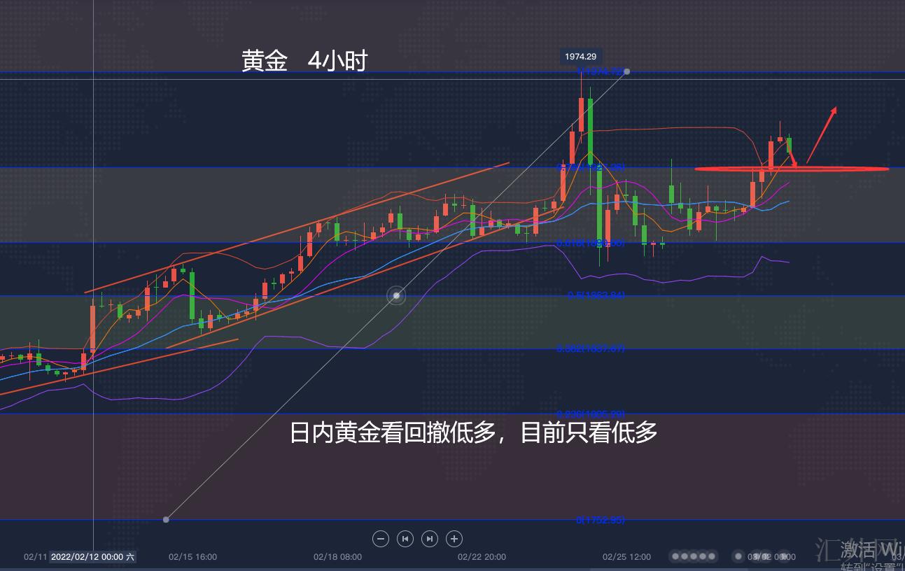 文接上回,午夜觉得黄金将迈出较强的抑制左右的回撤操作,但午夜黄金忽然走强,是因为于欧盟及美国对俄罗斯的制裁举措以及俄罗斯与乌克兰战事激化助推债券收益率走跌。在该种不确定期间,黄金被觉得是一种安全的储值手段,也是一种对冲持续上涨的通货膨胀的工具。提升黄金价格持续高点强劲,日K线在经历双十字K线整理修正后面转大阳线收回失地。始终未能下缘区间,同期在收回在此之前的上影线的失地,局部短线从新回到买方,而击穿口1922则转换成支撑,也是日间短线强弱临界点,此位之向上瞧强劲保持。黄金昨日大阳线收高,守稳区间下缘走回弹收回,击穿中性值1922一线后面迈出一次强劲上升,最高到1950。4小时经历了二次下探回涨启稳,第二次未破1877构造平台性支撑,而在此之前的急跌导致一次性质的回踩修正,没有连续性,趋势仍未更改,从新守稳低位走收回,致使短线趋势从新转多。而中期上升浪形临界点就在1877一带。做为一个浪形的调动低位,后市不朝下击穿。则会依托浪形低位走浪形保持上涨。昨晚击穿1922中性值后回测1911又一次启稳上涨,上一日的次低位是今日的买方临界点,而击穿口1926-1922做为支撑回踩看涨。