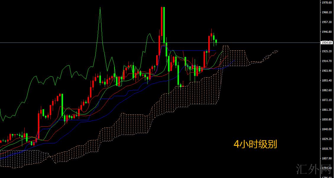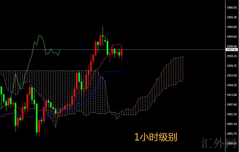回归技术分析向上瞧,4小时级别当前我们分析出,1925上方为短时间后续黄金是否持续推涨的重要持稳区域,经历今日美盘后,4小时云层带的最后保守位置也将从在此之前的1900以下攀升到1910为位置,从昨日的K线行情也能找出1910的支持有效性。同期在1小时级别来说,在今日美盘时段的云层带也运行至该位置。进而得出我们今日关注的两个重要支撑区域分别为1810左右及1825-30名置的持稳续涨区。