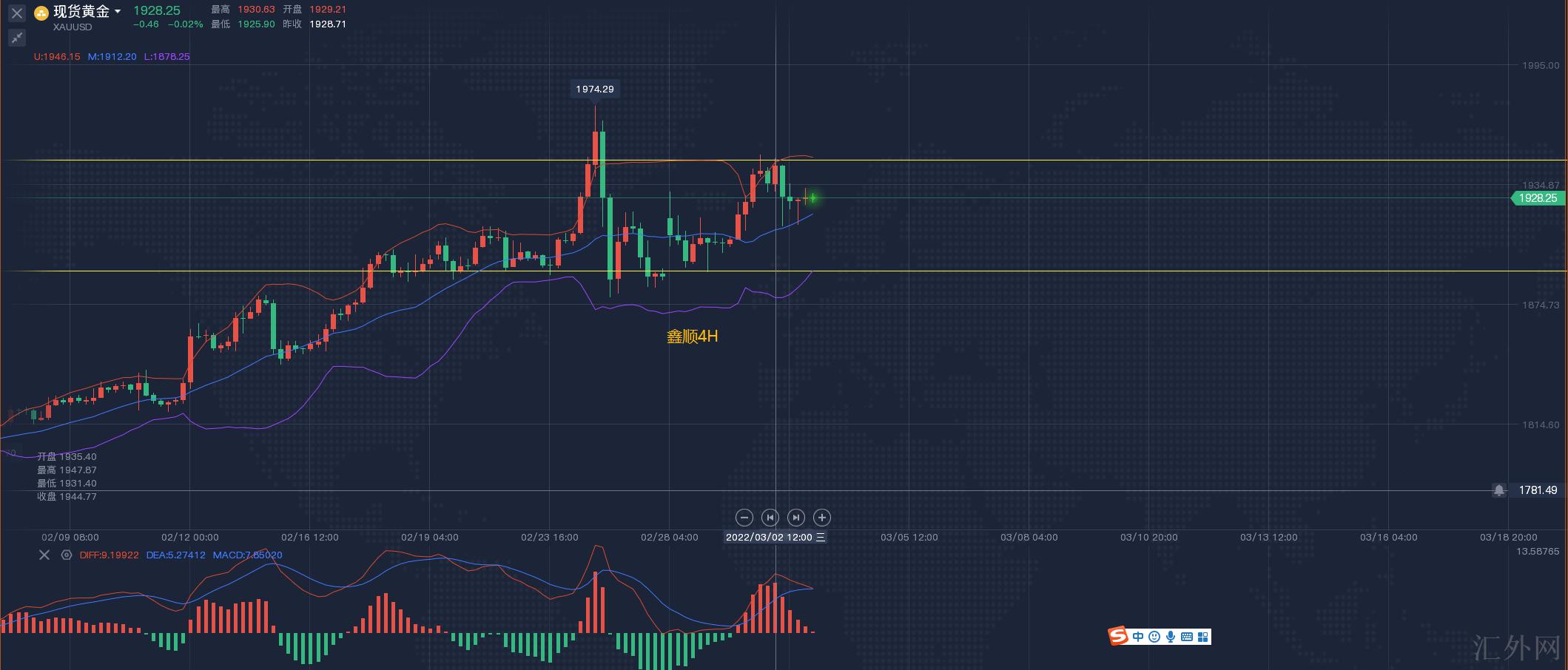 黄金亚盘交易参考:1930左右空止损5美金,计划1920、突破持有!