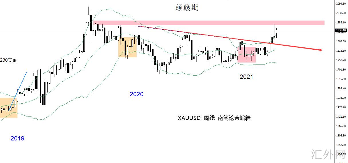 尽管极或许会有次高的存在,但今天的非农我反而并没有期望黄金直接回踩,反而是对高位1974,次高1960一带刷新。甚至在1920—1970再做横盘会更好,对加息的期望越高,到时加息并没有十分贴近预计,黄金的抛压将令更深。