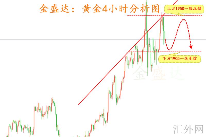 黄金回踩1905-1912一线不破买涨,止损1897,计划1950一线;