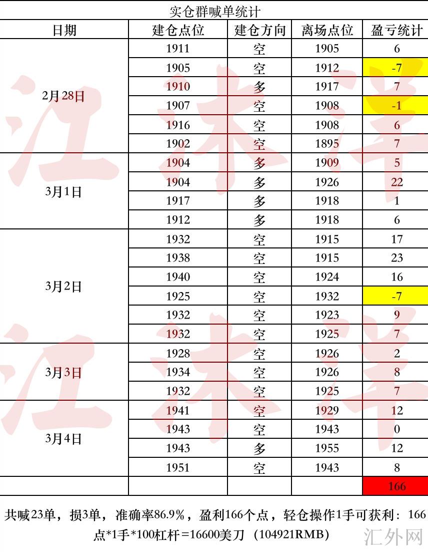 下方是这周实仓群里的做单统计,具体盈利依据个人跟单情形不同收益不同,报表仅供参考。欢迎各位前来验证。这周指导到此终结,祝大家周末愉快!好好休息,迎战下周。江沐洋期望与你的并肩作战!投资有风险,入市需审慎。