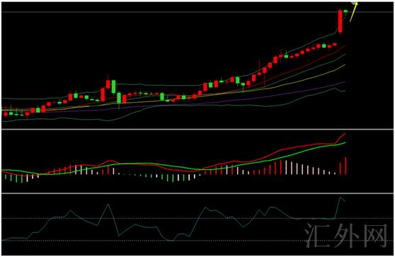 原油星期一在星期五暴涨约6.81%的基础上,星期一再次跳空上升,最高约130美金,当前行情略有一部分回调,但是依然处在120美金上方。当前技术分析原油价格击穿了boll带上缘的抑制,MACD红色量能柱放量,快线正处在远离慢线方向运行,同期CCI指标严重超买,综合来说,目前原油价格的买方行情格外强势。且技术分析击穿117抑制,在以下仍有121一线的支持(boll带上缘的支持),日间较难回补跳缺口口,当前不提倡空单操作。