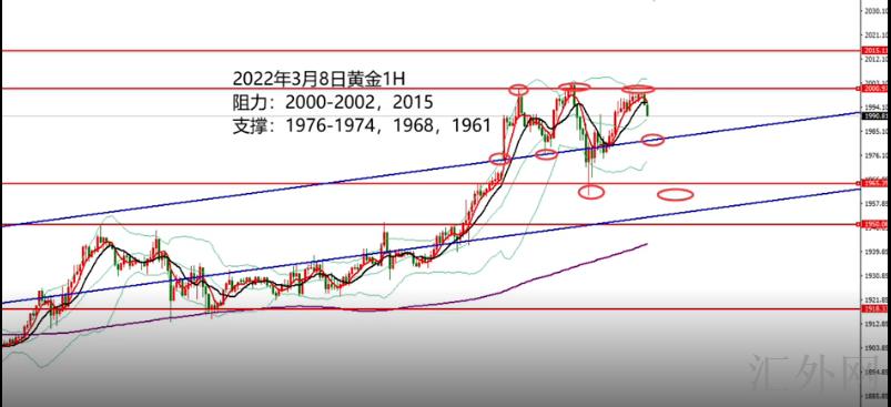 昨日星期一,伴随欧美等国家规划加大对俄罗斯实行制裁,首要依旧原油进口层面,美故三大股指连续下挫,其中纳指刷新近一年的收盘低位,原油星期一开盘跳空大幅上升,然而美盘时段冲顶回调维持高点的扫荡调动,避险情绪的助推下,黄金同样跳空高开高走,然而从夜里时段开始,黄金开始上演过山车行情,再次破高2002.5后,冲顶回调大幅跌向1961,收盘摸底回涨收回全部失地,来回扫荡