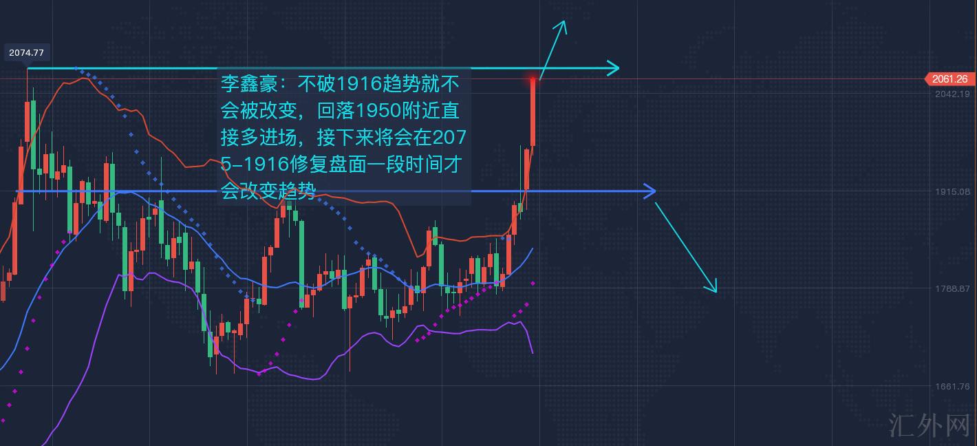 目前日K线行情依旧单边上升的局势,上涨通道维持完好运行,回踩的低位亦在持续攀升,而且踩着MA5—MA10均线上升,布林带上缘保持往上开口运行,MACD红柱能又一次放量;买方趋势一目了然,每次迅速下挫都能面临回弹回涨而且更深一步上升。今日早盘又一次遇阻2000关口走跌,而且跌至1980名置,看似2000关口具有大批卖方遇阻已经形成平台阻力。可却在欧盘时段黄金面临强劲推涨,一举击穿2000关口,买方如虎添翼增速上升到2020高点,又一次创下高位。看多情绪愈加浓厚,冲顶2020高点后回踩2000关口,美开盘之出期徘徊在2010左右,布局的2000关口多单成功抵达2010计划。今夜十点半开始机构持续砸盘,突破2020后一直上升到2063高点,下一高位关注前高2075一线压力,假使又一次突破2075那么上方空间将不可预期,当前冲顶回调徘徊在2043一线,综上所述:李鑫豪推荐操作上回踩低多为主,以下着重注意2035一线支撑,上方着重注意2074一线压力!