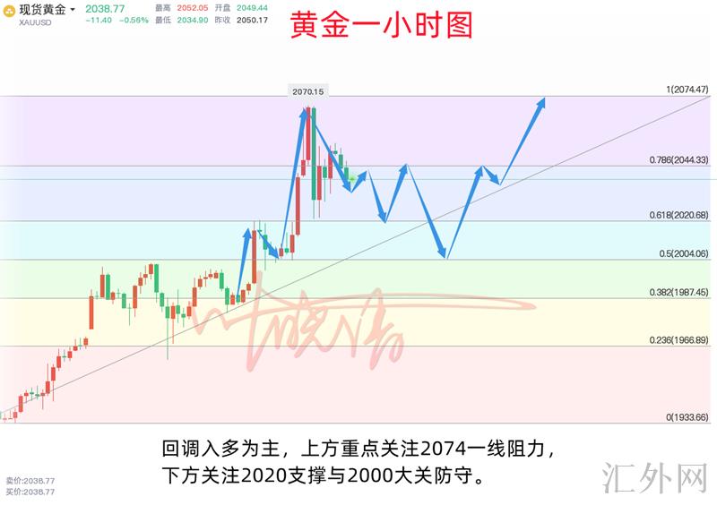 目前日K线行情依旧单边上升的局势,上涨通道维持完好运行,回踩的低位亦在持续攀升,而且踩着MA5—MA10均线持续创下高点,MACD保持红柱能放量;买方趋势一目了然,当下已经一举击穿2000关口这个平台阻力,买方如虎添翼增速推涨到2070高点,看多情绪愈加浓厚。买方这样疯狂,搞不好2075前高全将又一次击穿,毕竟连破数关阻力,操作上任然维持回踩入多为主,上方着重注意2074一线压力,以下注意2020支撑与2000关口防守。