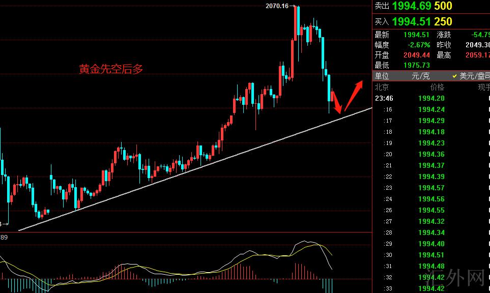 3.9黄金策略:黄金1995.5左右空,止损2001,计划目睹1980