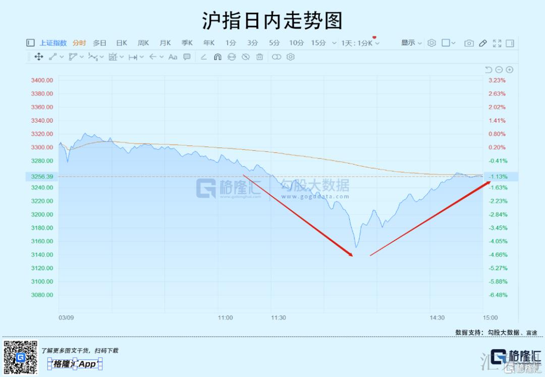 今日下午开市后,上证指数迅速急挫,在13:38后面的10分钟之内,下跌2%,总降幅竟然最多胜过4.4%,跌穿3150点。后“神秘力量”显现,上证降幅收窄到1.13%。深成指从-5.1%收窄至-1.12%,创业板指从-4.5%收窄至-0.63%。