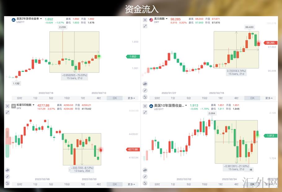 看上图黄框部分,是从局势变糟以来的单价表现,避险也没让股市跌得太猛,已经表明当下是有人在接手的,老拜头能做的配合也就只能到这了,先制裁大毛,再制约大毛能源出口抬高世界通货膨胀,各国货币一顿贬值,众人一看,美国风景独好,走走走,一起把钱放美国,他们是挺高兴,美国也挺高兴,网早就拉好了就等羊来,里应外合,这些外资也没什么更不错的办法。