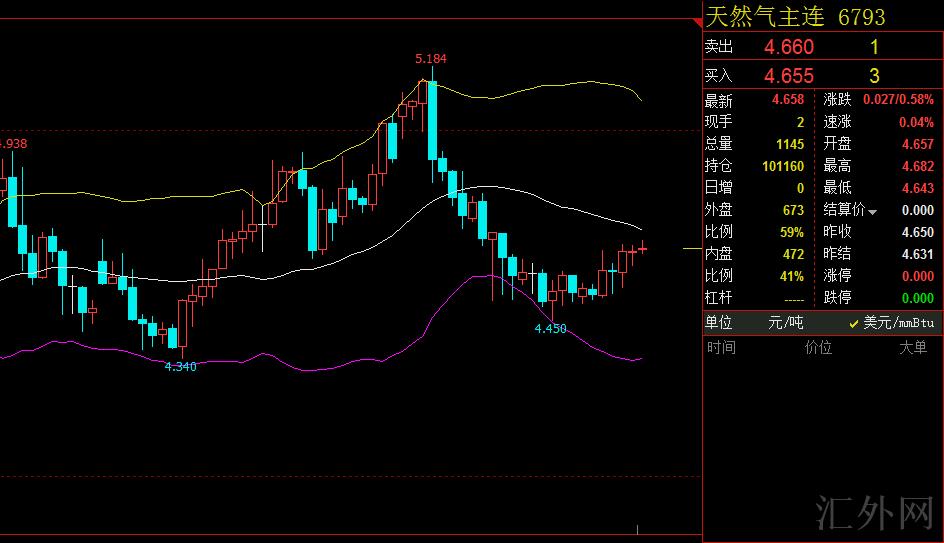 天然气最近横盘,昨日没有什么行情,当前来说刚抵达我们买跌位置,看上方四小时布林带中轨抑制,有进场的朋友维持昨日看法不变,4.680当前已经进场。