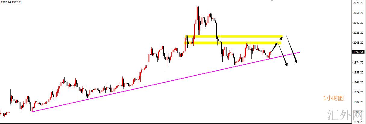 至于说短时间的回弹,空间上我认为比较有限,昨天的高位2008,以及顶底转换位2020全将形成抑制黄金的压力。想要布局空的朋友可以关注这两个点位的遇阻情形,