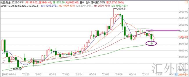 黄金当前最低是下探到1960这里,截至到当前再次到1960回弹到1970上方。