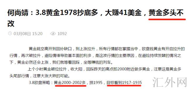 今天黄金欧盘给到低多的策略,因消息面的影响,黄金痛跌止损,黄金突破下挫1970,最低跌向1960,美盘黄金回弹推涨,收回降幅,黄金短时间多空皆有机会,操作以高空低多为主、