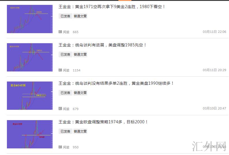 王金金————专注黄金 、原油行情分析!精准率和利润是检验实力的唯一标准!趋势投资, 大道至简;盈利第一,风控为王!我们不做死买方,也不做死卖方,要解决市场的滑头,顺势而为!基本分析决定一切,价格包容一切,K线反应一切,技术分析诠释一切!假使没有交易原则和纪律,技术等于零,将令失去一切!