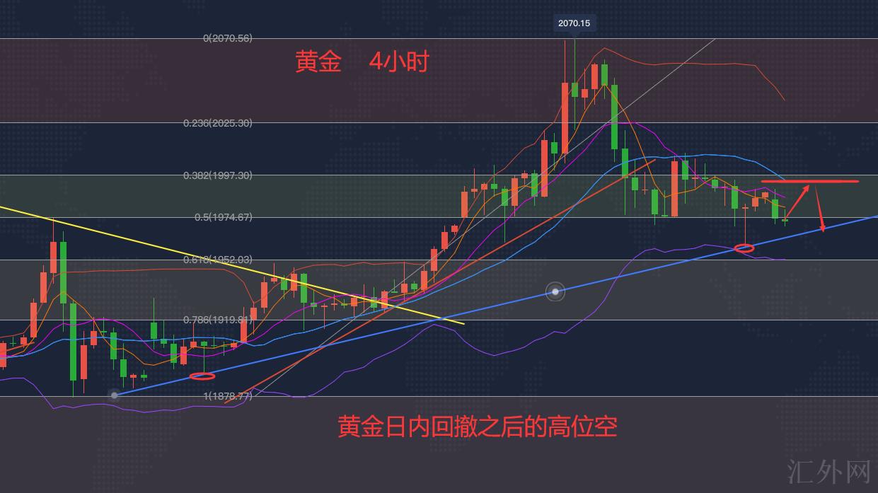 4小时周期的60日移动均线支撑都在1970左右,而且1970/1960是上周初上升的支持,后半周回调的支持,是重要关注点位,所以黄金当前只能先顺势看弱势行情强度,午间能证实1970/1960支撑,可以短线看回弹,上方看1990-2000,欧元兑美元盘再找机会空。归纳,今天黄金上方阻力位在1990/2000,以下支撑点在1970/1960,当前行情偏空,但确定支撑可多。这周慷慨向或许要开始转空。