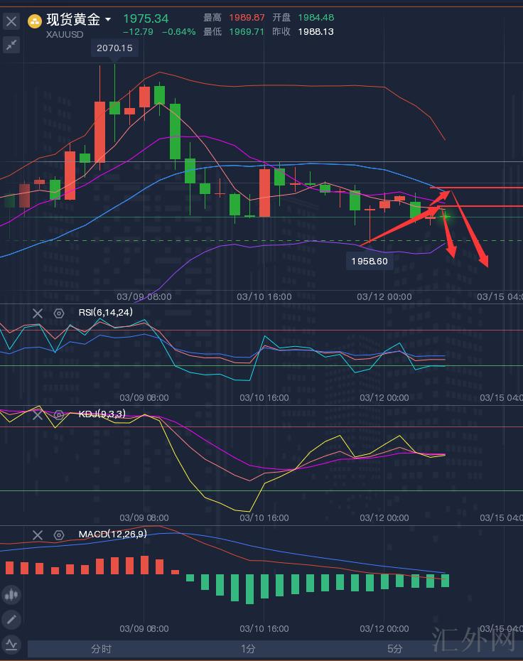 星期一(3月14号),黄金现货震荡走软,当前交投于1973.76美元左右,一面市场对俄乌局势的忧虑情绪遇冷,关注更深一步的双方会谈,另一面,这周将面临美联储利率会议,市场广泛预期将令起步加息周期,使黄金价格遇阻;技术分析短线也倾向卖方。