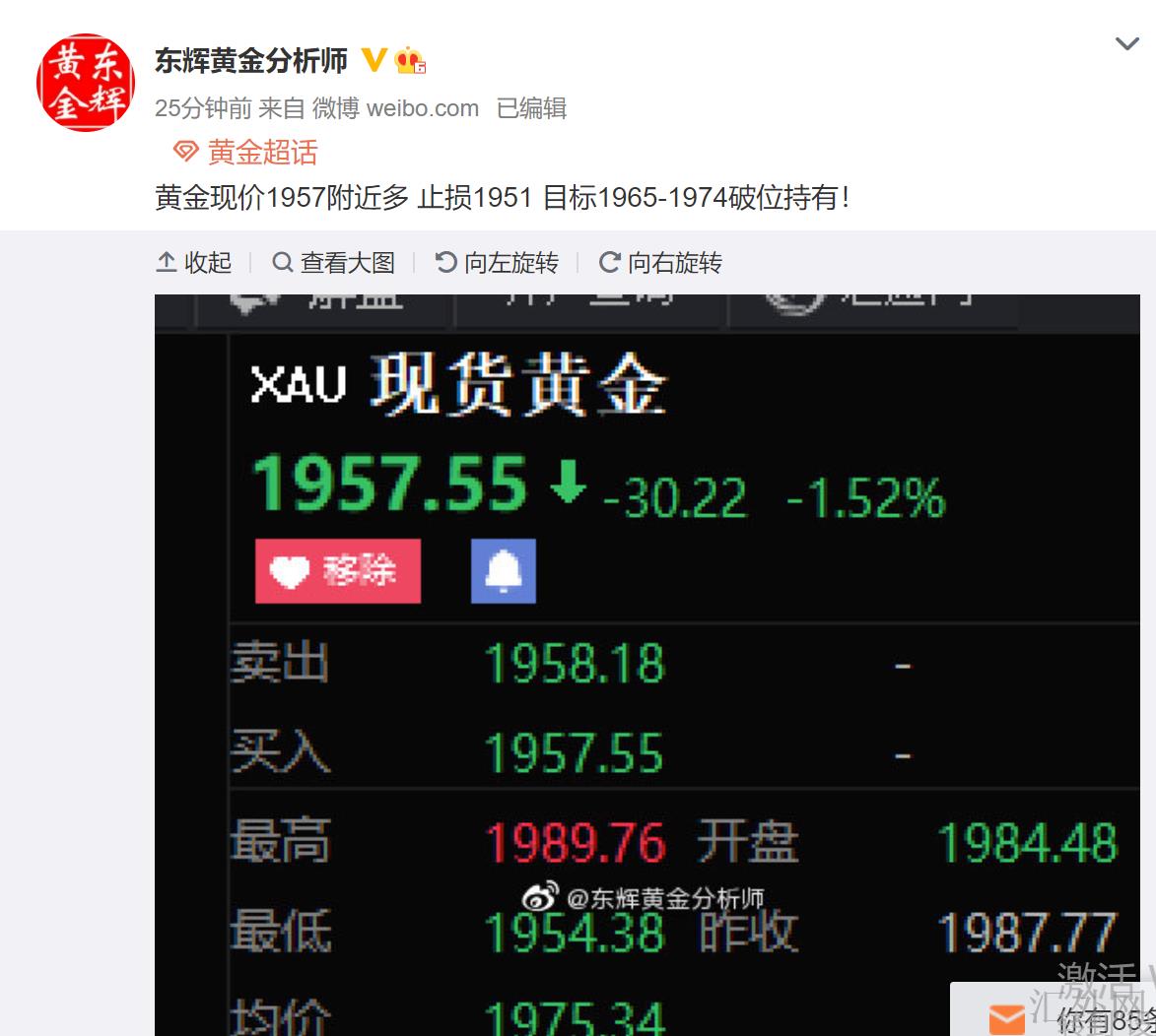黄金1957左右多 计划如下!美盘直接看摸底上升!稍后技术面!
