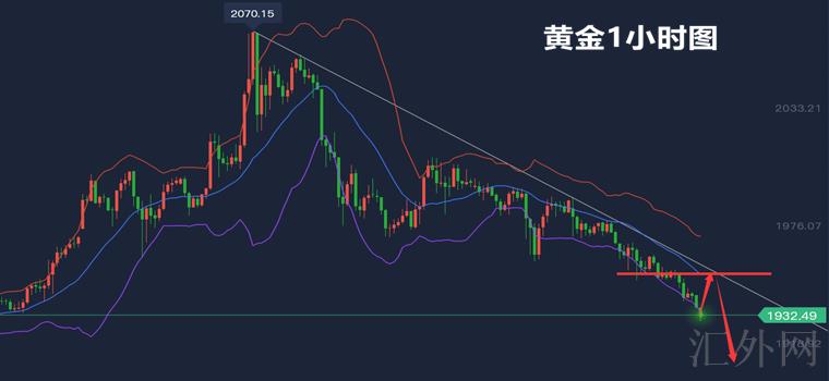 黄金小时级别,可以目睹黄金一路下探,小时级别尽管迈出了多次底背离,但是由于4小时快慢线开口平稳发散中,所以预期小时级别的多次底背离也很难能够动员黄金迈出大幅上涨,这就是大周期方向决定小周期的行情,即便小时级别能迈出回弹,也是下挫过程中的回弹,并没有将是那种筑底的回弹。