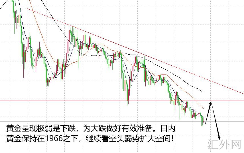 星期一黄金显现慢跌,尽管有回弹,但强度不大,最高在1978左右,一直慢跌向1950,形成单边18美金空间,空单难做上只能做适当回弹,多次给出有效多单,整体适当获利。日K线大阴收线,跟上一个交易日形成连阴暴跌行情,很显著,单边均线行情转空,极弱状态下仍有低位显现。亚盘黄金直接下挫,又一次创下低位,日间交易跟上趋势找准点位买跌即可。亚欧盘有一个转折点需求注意,日K线布林中轨的支持在1940左右,尽管亚盘表现极弱,但不追空原则,看1940的得失,1940突破看1930,1940不破则可以看一次回弹空间,事实小周期的单边均线一直点在1960/1966,所以,买跌还得看回弹终结后,欧元兑美元盘的趋势强度。