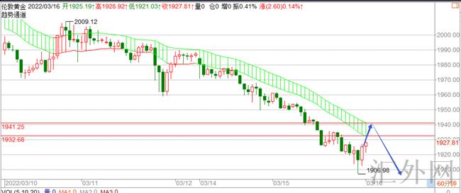 当前黄金至低位1906这里有所回弹,截至到当前是回弹到1925左右徘徊。