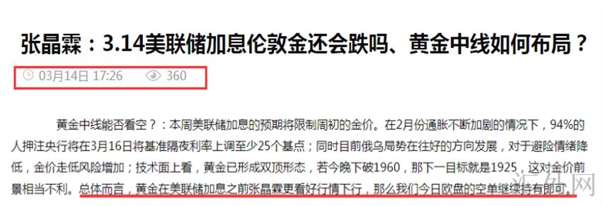 最近,前有俄乌局势的矛盾黄金买方一飞冲天,后有美联储加息预计黄金卖方疯狂反攻,是的,在外汇这个市场,每一天都充斥着无数的消息与策略,每一天全将有人赚的盆满钵满刺激着我们的眼球,多少人面对诱惑踌躇不前,又有多少人正在做着心动不如行动,一脚踏进了万丈深渊,最终的结果不言而喻。很多寻到张晶霖的投资人都在抱怨这个市场赚不足钱,耗尽了自己的资金与精力,我承认这个市场的确是盈少亏多,20%的人赚着其余80%人的钱,请不要把投资当做天上掉馅饼的有益的事,我们只目睹了别人赚钱的表面,却没有目睹盈利的人在那么多日日夜夜盯盘,耐心等候机会,面对震荡严守交易方案时的困难,我每天坚持在市场更新文章分享自己的分析与思路,不是告诉你,我赚了多少钱,而是让你明白跟着合理的思路与策略去把握行情,你能从中得到多少盈利!实实在在写分析,认认真真做交易。只愿你在这个市场少走一点弯路。