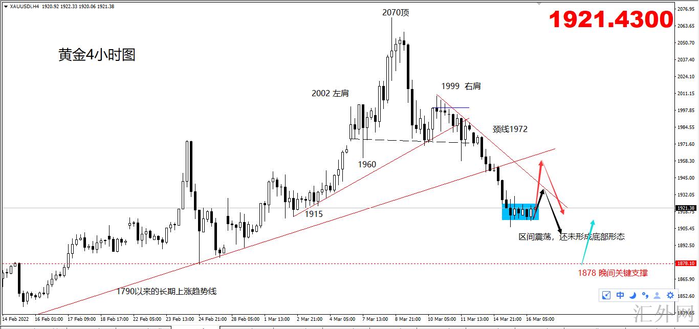 夜里2点布局的利率会议,假使是按预计加息25基点,短时间黄金会有适当的回调,但是因为于符合预计,回调强度会比较有限,若无意中不加息,则注意黄金价格直接上涨的机会,若加息50基点,则注意愿下击穿1900的机会,受于以前鲍威尔已经放出加息25基点,所以大约率不会显现无意中,符合预计的情形下,下挫后面上下扫的几率偏大,2:00的报告并没有是着重,着重关注的依旧2:30鲍威尔的讲话,会否表露出下次会议加大加息强度的情形,以及有关缩表的首次时间,此次会议中,大约率不会直接缩,但是注意鲍威尔对首次缩表的时间的规划。