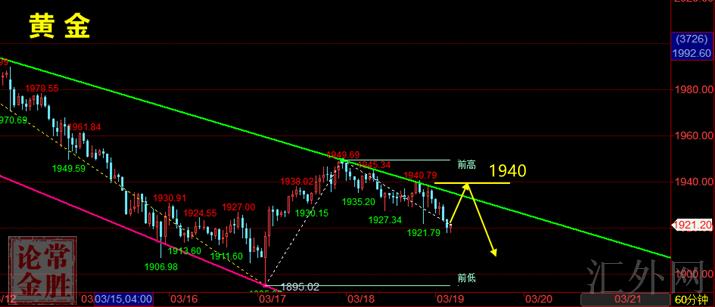 买方星期五白天尽管强劲,但是卖方如当头一棒,直接绝杀,此种行情回弹就是空,下周依旧是以1940为防守,持续布局空单,卖方必将持续攻城拔寨,将价格打压到1900以下,美联储加息刚落地,又一次显现加息预计,消息面有好处空头黄金,下周空持续数钱,一万年太久,只争朝夕。