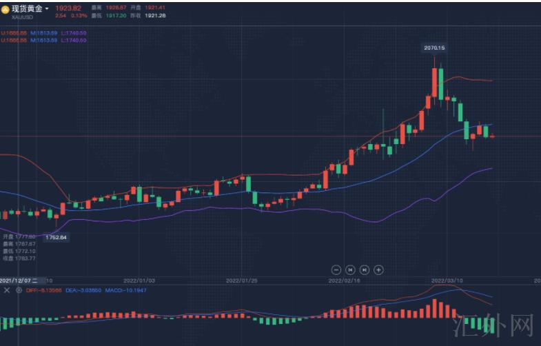 黄金受俄乌局势影响,曾击穿2000关口到2070高点,极限接近新冠时期2075高点,最终冲顶2070面临大幅回调。当前美联储和市场预计统一加息25个基准点,黄金来了个下探1900关口的回弹回涨行情,回弹打击1950关键点位,其行情和李鸿彬预计统一,向上瞧行情图就一目了然,毕竟从2070高点跌向1900关口,降幅将差不多170美金,技术分析也需求修复。当下日K线高点2070吞没形态面临连阴回调1900关口,代表高点有大批做空盘遇阻,随后回弹也未能击穿1950关键点位,持续遇阻布林中轨以下,MA5—MA10均线开始死叉朝下运行,1小时也是高点头肩顶形态回调,四小时维持低点震荡,空军占领主权;周线更是空军反攻显著,高点十字星带有长长上引线,随后再收一根大阴,有黄昏星信号!隔日亚欧盘差不多保持在1920-1930区间震荡,布局的1929空获利1923出局;在美盘时段又一次刷新1918名置回弹回涨,而且击穿1930关键点位到1940高点,布局的1935空成功止盈!当下以下1920多次试探都未能跌穿,呈现做多盘支撑;上方注意1950关键点位阻力。
